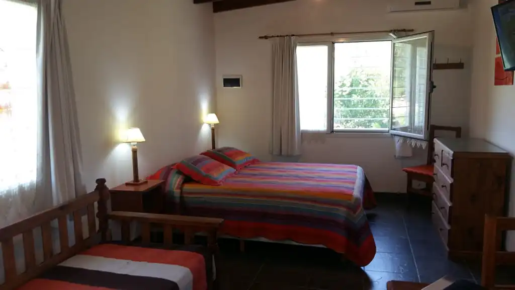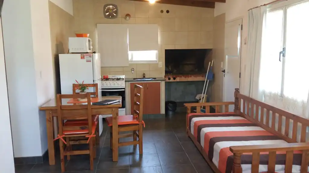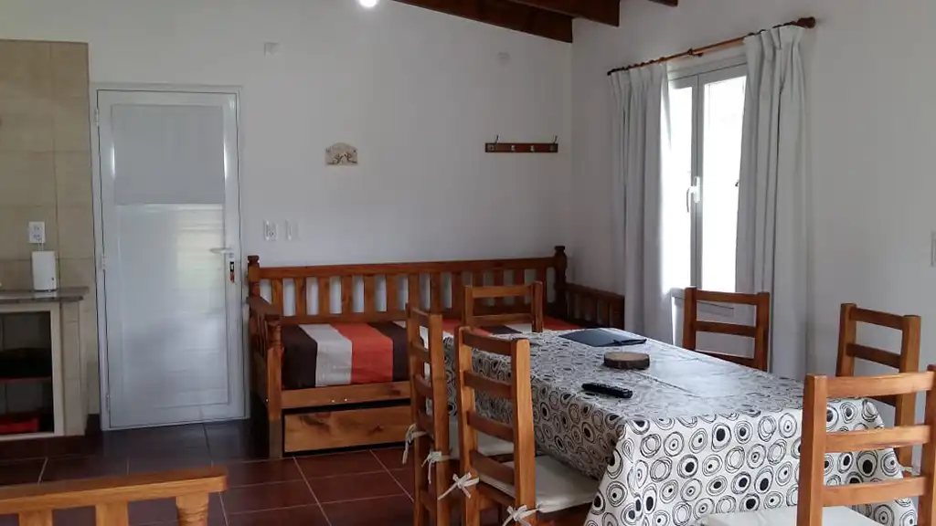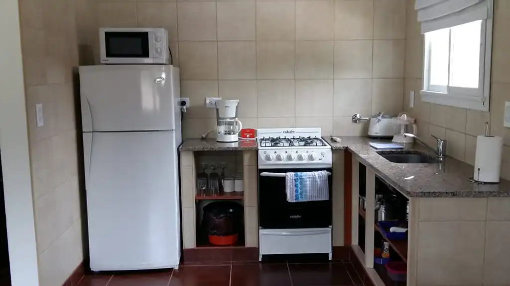Preparadas para cuatro personas con cama matrimonial y dos camas tipo marineras, cocina con horno, heladera con freezer, microondas, cafetera, juguera y pava eléctrica, aire frío calor, salamandra a leña, agua caliente por termotanque, Wifi, TV, parrilla, baño completo con bañera.