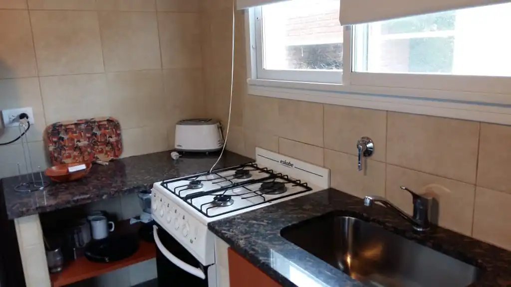 Preparadas para seis personas, cama queen en dormitorio y cuatro camas tipo marineras en living, cocina con horno, heladera con freezer, microondas, cafetera, juguera y pava eléctrica, aire frío calor en dormitorio y living, agua caliente por termotanque, Wifi, TV en dormitorio y living, baño completo con bañera, parrilla.